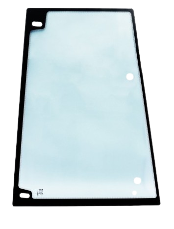 Geamul oferă o vizibilitate excelentă în lateral, ceea ce contribuie la manevre precise și sigure, mai ales în spații înguste sau în zone de lucru aglomerate. Conturul și dimensiunile sunt concepute pentru a se potrivi perfect în structura originală a cabinei, fără a necesita modificări suplimentare. Instalarea se face rapid și eficient.